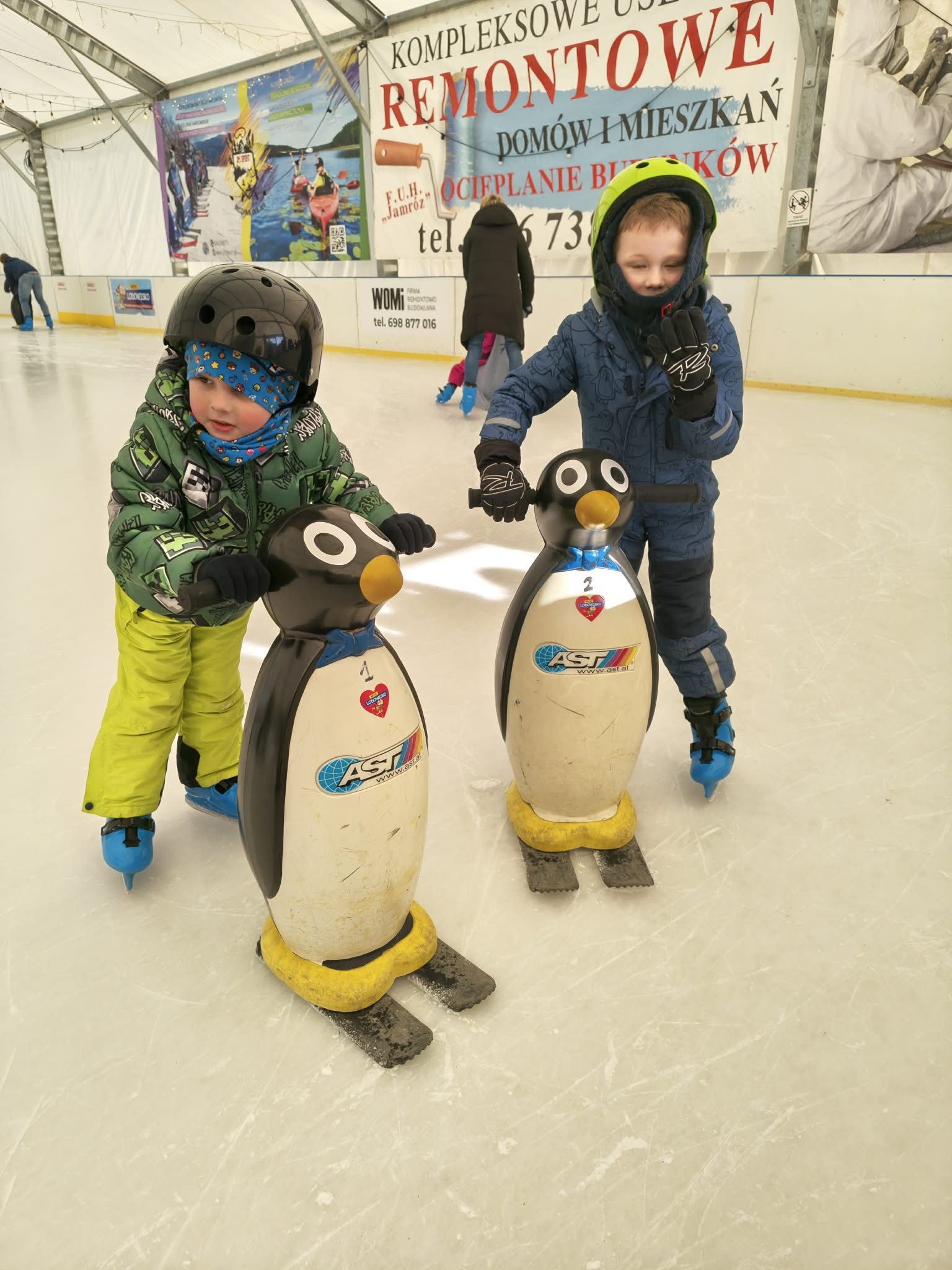 Pani Agnieszka i pani Beata z ogromnym zaangażowaniem pomagały małym łyżwiarzom stawiać pierwsze kroki. Kiedy ktoś potrzebował małego „napędu”, panie zamieniały się w ekspresowe holowniki i z uśmiechem woziły dzieci po lodzie.