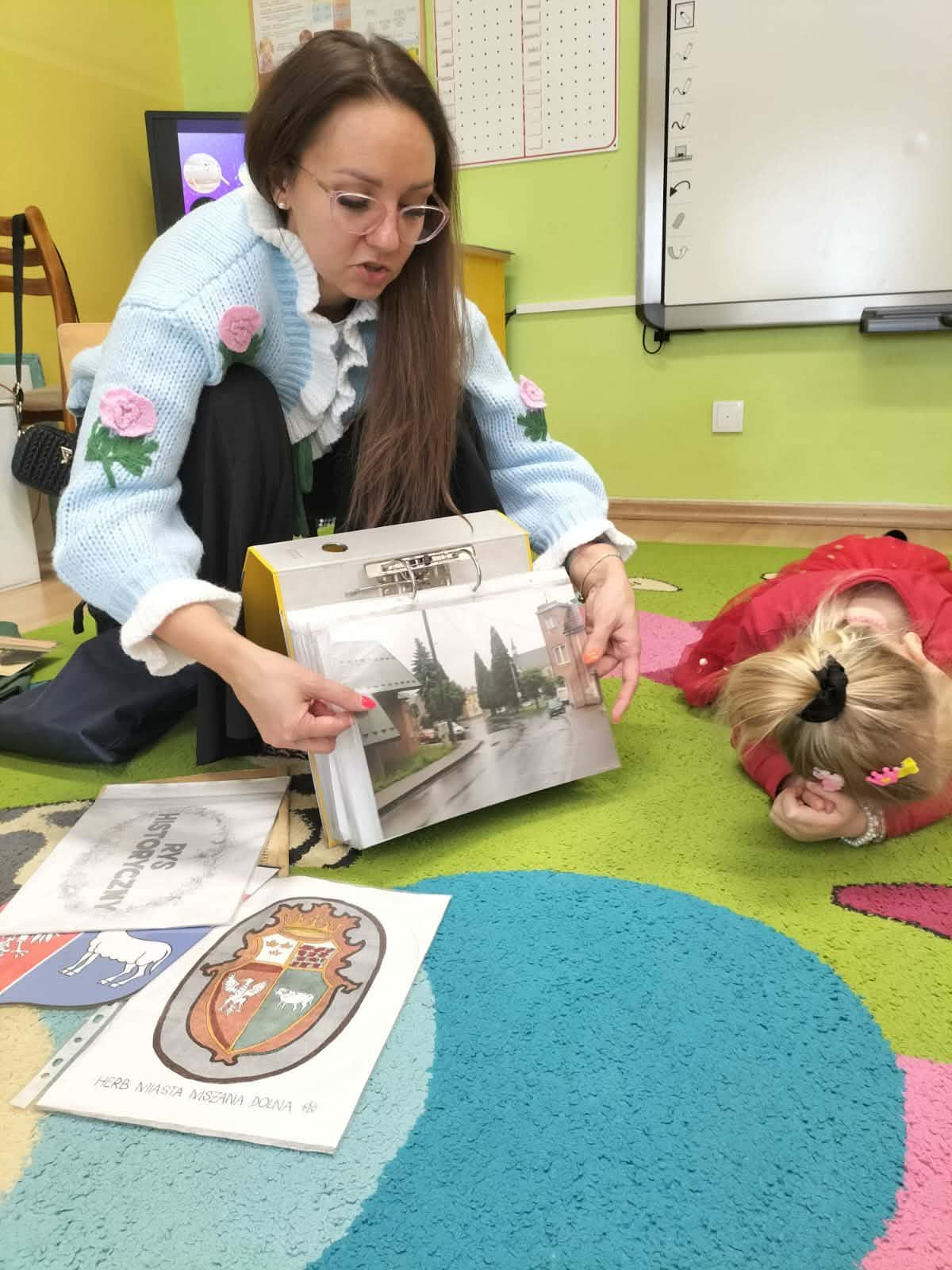W ramach Innowacji Pedagogicznej „ Mały Patriota” dzieci z naszego przedszkola miały okazję uczestniczyć w niezwykłym wydarzeniu „ Dniu Małego Patrioty”. Gościem tego dnia była Pani Edyta z Biblioteki Publicznej w Mszanie Dolnej, która przygotowała dla dzieci fascynującą prezentację o historii naszego miasta.