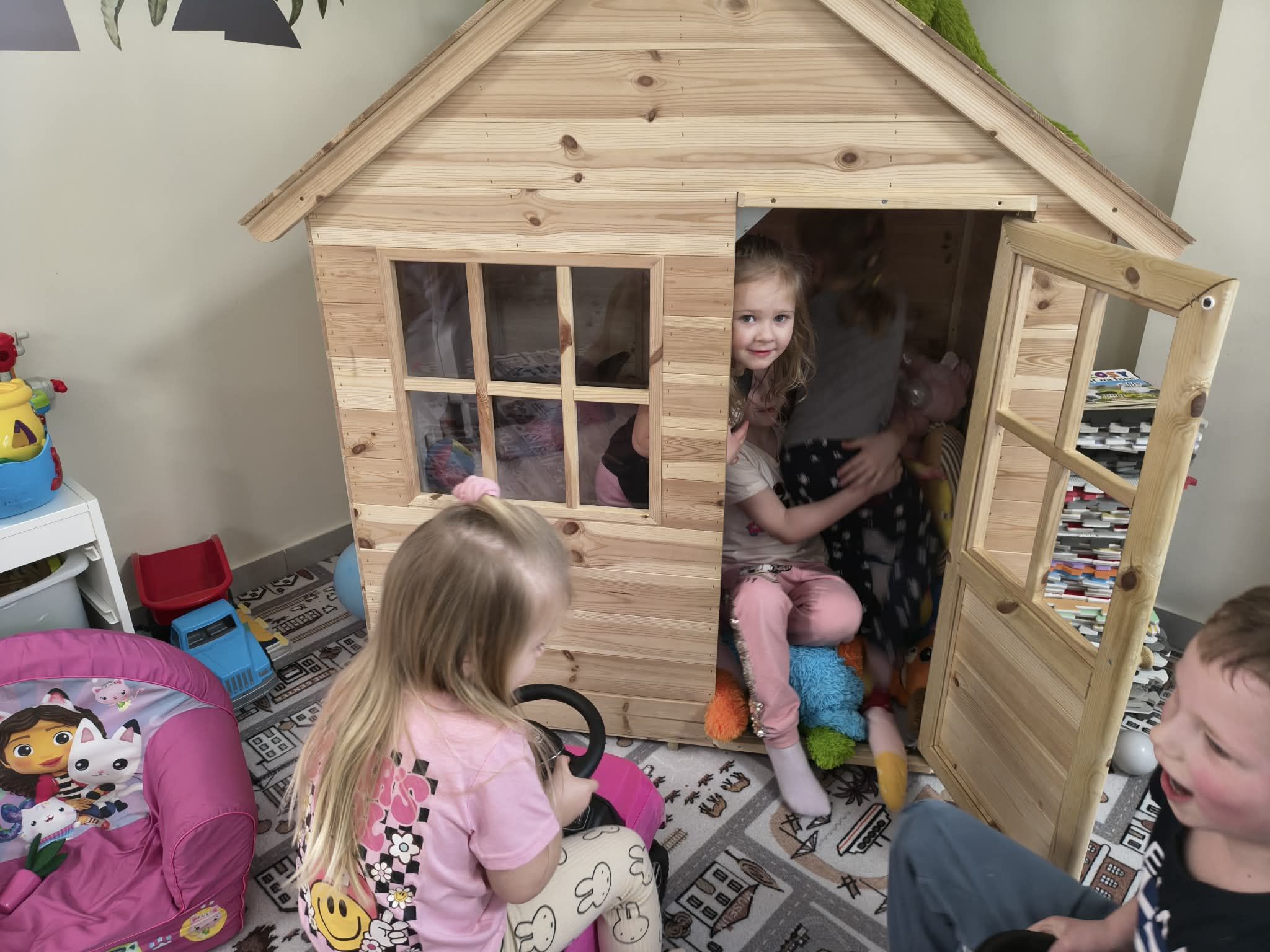 Nie zabrakło także zabawy „ w pociąg”, która była hitem dnia! Dzieci wzięły udział w tej radosnej zabawie, jeżdżąc po całym przedszkolu, śmiejąc się radośnie. Zabawie towarzyszyły ogromne emcje, a wszyscy uczestnicy byli w doskonałych humorach.