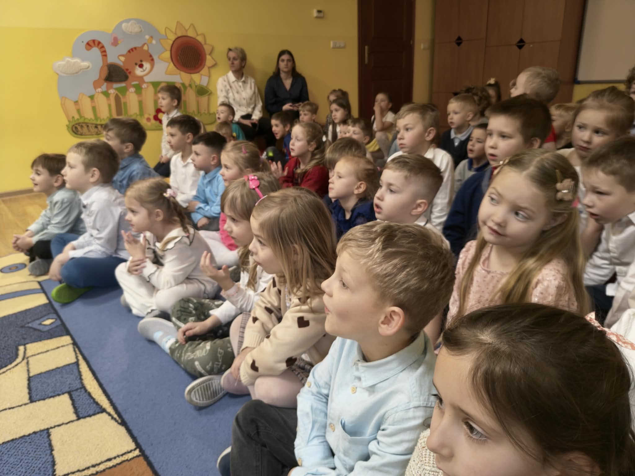 Aktorzy w przystępny, ciepły i pełen humoru sposób zaprezentowali historię, która opowiadała o tym, jak nawet najmniejsze dobro może wzrastać i wpływać na otaczający nas świat. Przedszkolaki od samego początku były zaangażowane – żywo reagowały na wydarzenia na scenie, śmiały się, zadawały pytania i chętnie brały udział w interakcji z bohaterami. To nie była tylko bierna obserwacja, lecz pełne uczestnictwo w spektaklu, które rozwijało wyobraźnię i empatię.